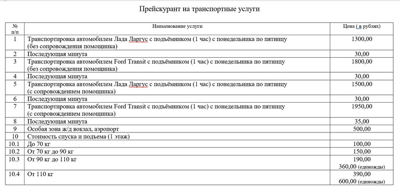Транспортные услуги 07.10.2025 15:39 изменено Телефон для приема заявок: (383) 210-25-72 Автомобиль - ГАЗель Лада Ларгус Автомобиль - ГАЗель Ford Transit Стоимость услуг Прейскурант на транспортные услуги, предоставляемые ГАУ НСО «Дома ветеранов Новосибирской области» с использованием автомобиля ГАЗель Лада Ларгус Документы для оформления заявки на социальную услугу (социальное такси) Положение о порядке и условиях предоставления транспортной услуги Приказ об утверждении транспортной услуги Акт оказания услуг (социальное такси) Заявка о предоставлении дополнительной социальной услуги (социальное такси) Договор оказания дополнительной социальной услуги (социальное такси)